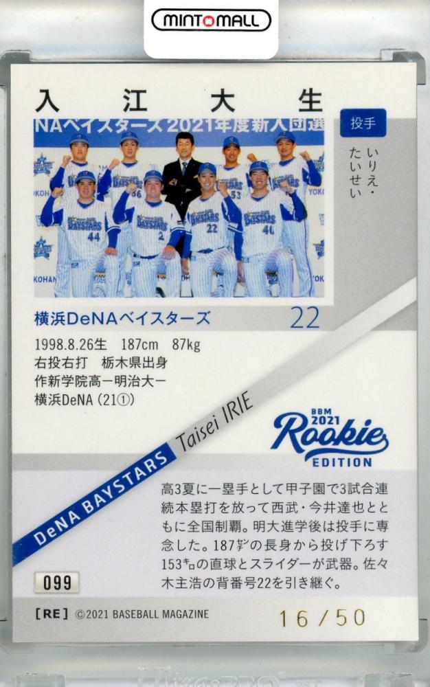 2021 BBM ルーキーエディション 入江大生 緑箔サイン版(RC)(Lastナンバー!)【50/50】 横浜DeNAベイスターズ