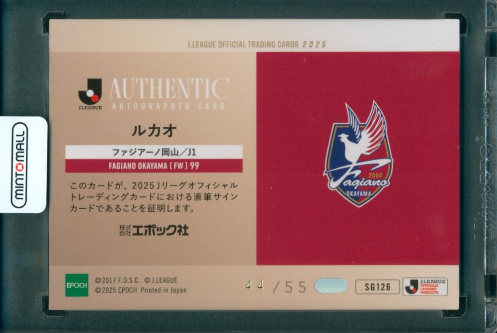 2025 EPOCH Jリーグオフィシャルトレーディングカード ルカオ 直筆サインカード【44/55】 ファジアーノ岡山