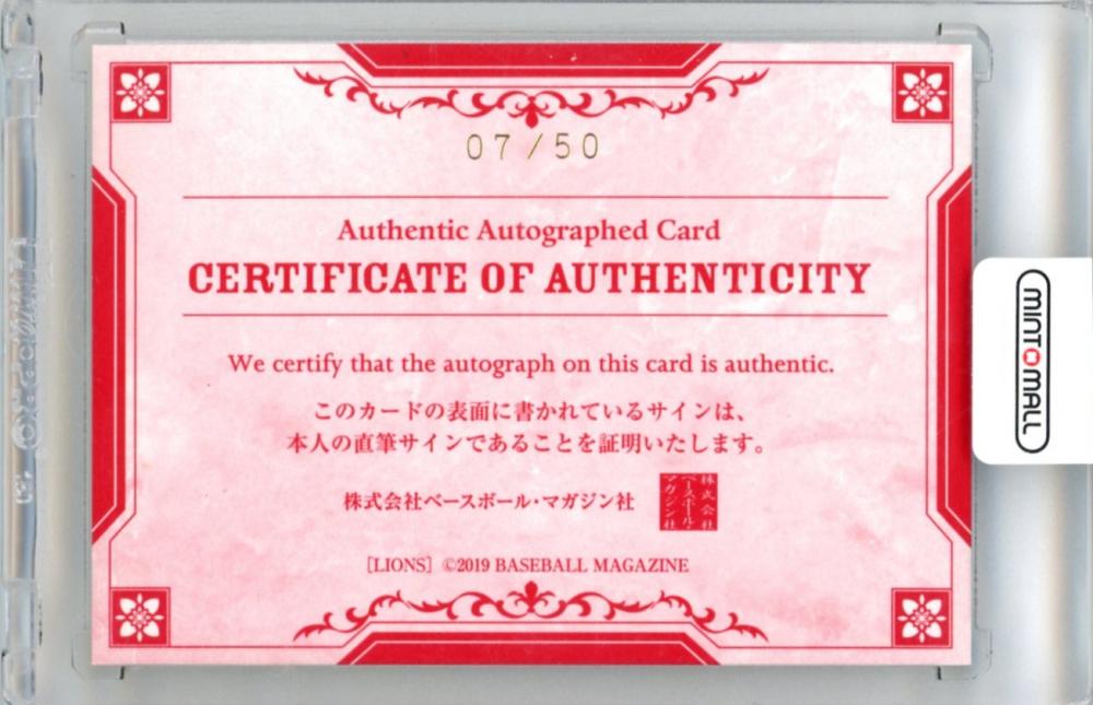 2019 BBM 埼玉西武ライオンズ 粟津凱士 直筆サインカード【07/50】