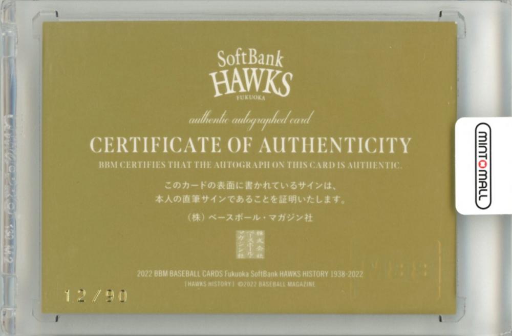 2022 BBM 福岡ソフトバンクホークスヒストリー1938-2022 加藤伸一 直筆サインカード 【12/90】