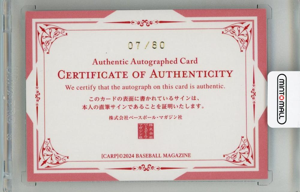 2024 BBM 広島東洋カープ ⽯原貴規 直筆サインカード【65/80】