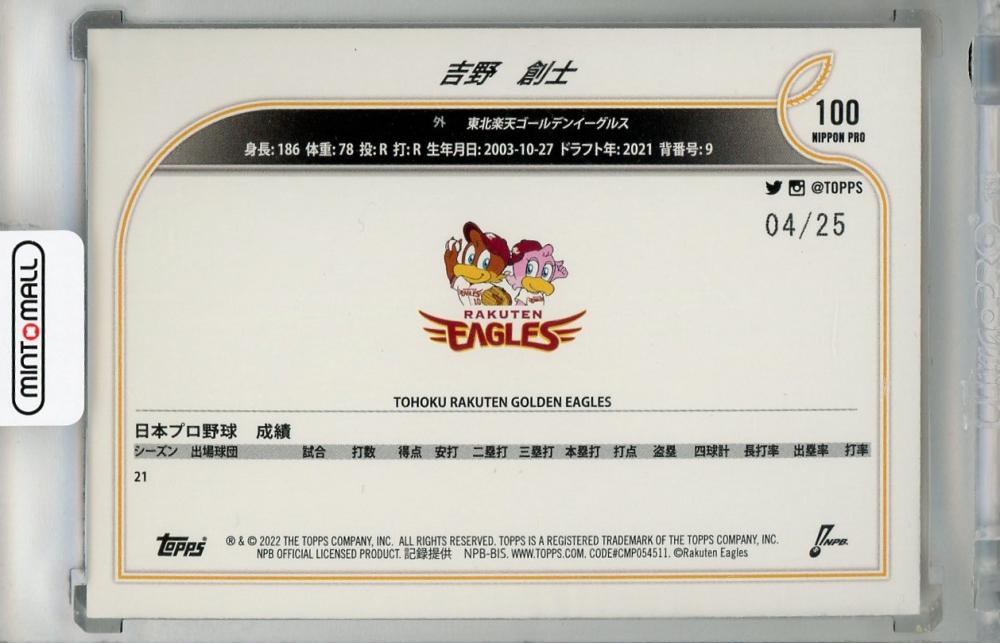 2022 Topps NPB 吉野創士 Orange(RC)【04/25】 東北楽天ゴールデンイーグルス