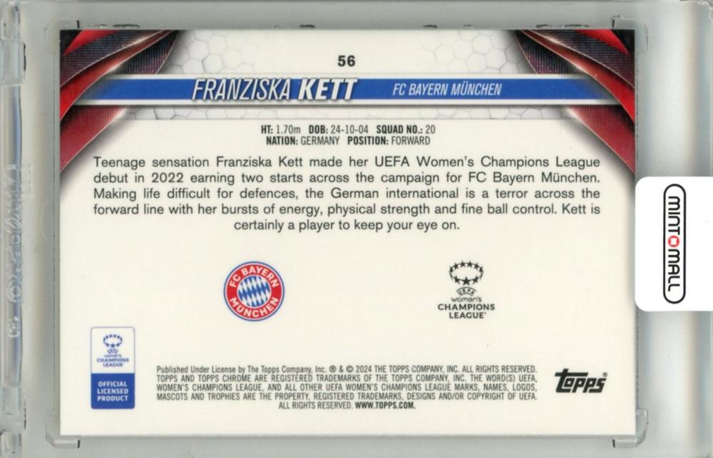 2023-24 Topps Chrome UEFA Women’s Champions League Soccer Franziska Kett #56 Base Gold Refractors【40/50】 FC Bayern München