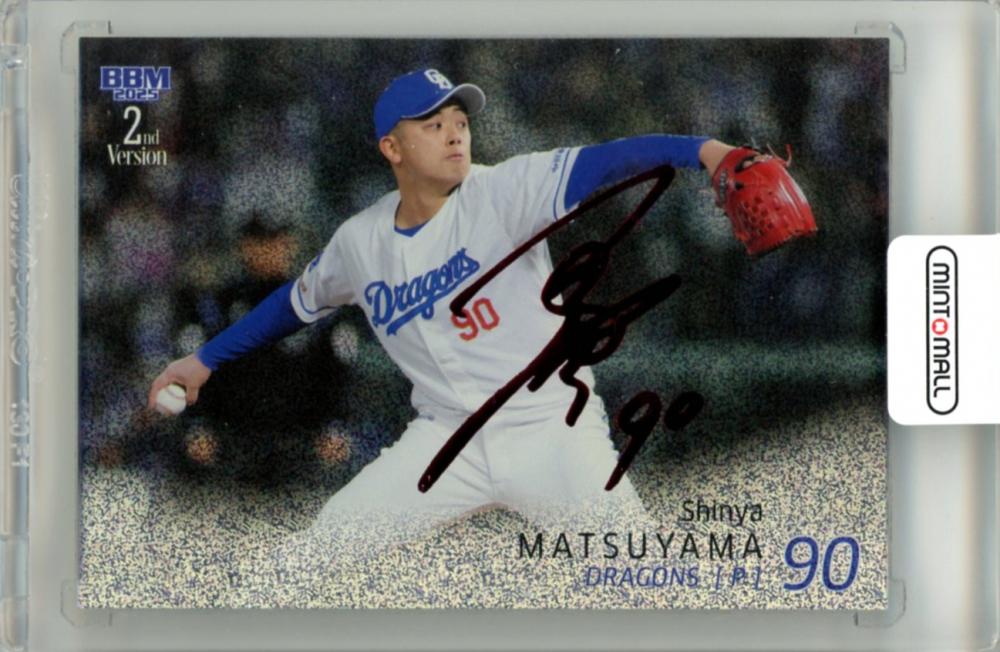 2025 BBM ベースボールカード 2NDバージョン 松山晋也 #470 赤箔サインカード【25/25】《ラストナンバー!》 中日