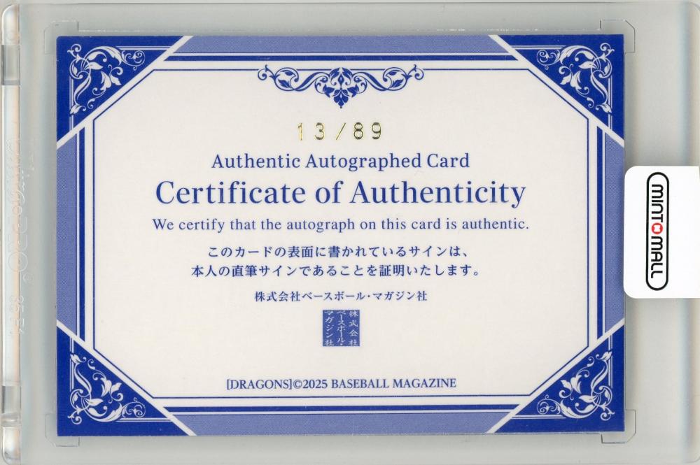 2025 BBM 中日ドラゴンズ 藤嶋健⼈ 直筆サインカード【31/89】