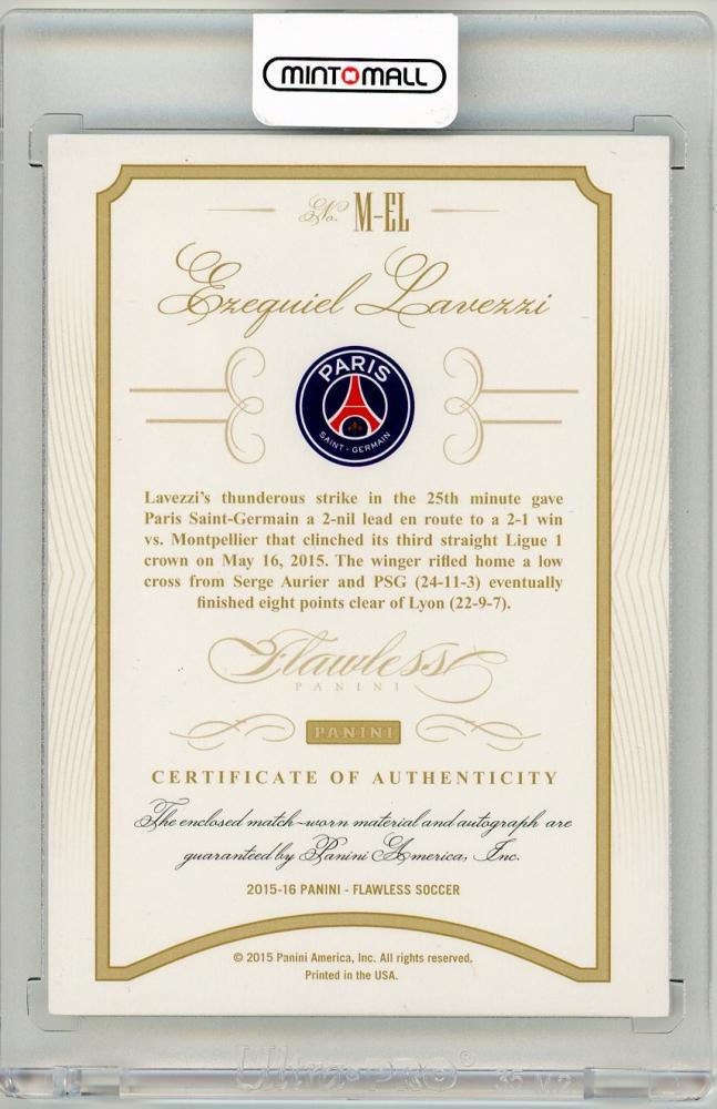 2016 Panini Flawless Ezequiel Lavezzi Momentous Autographed Memorabilia Emerald Parallels(ON CARD)【3/5】 Paris Saint-Germain