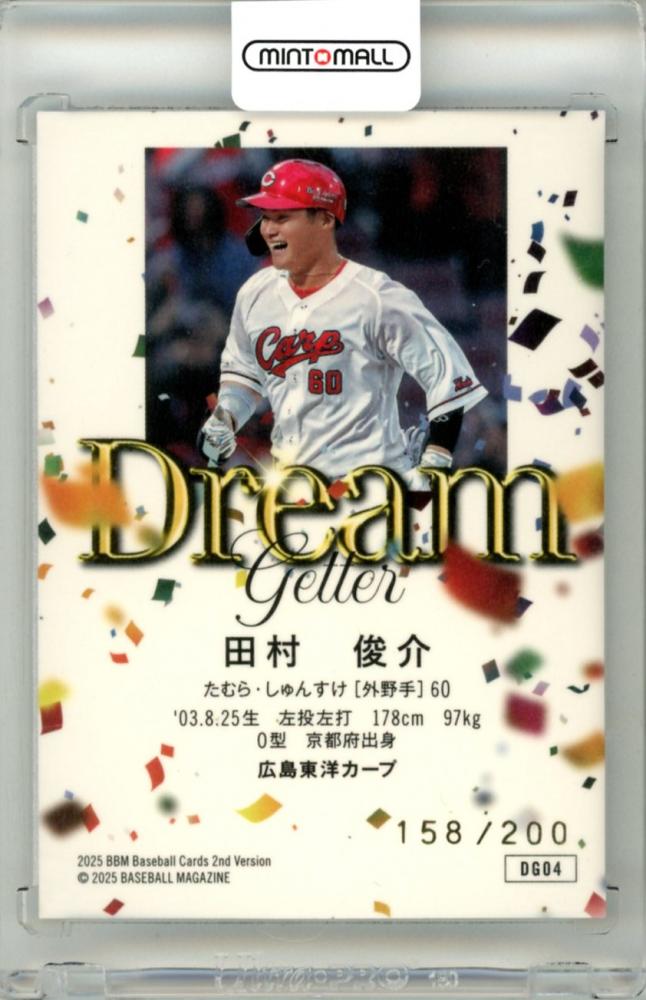 2025 BBM ベースボールカード 2NDバージョン 田村俊介 #DG04 DREAM GETTER 金箔版【158/200】 広島