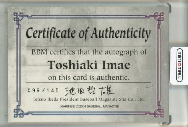 2004 BBM 千葉ロッテマリーンズ 今江敏晃 直筆サインカード【099/145】※サイン擦れあり