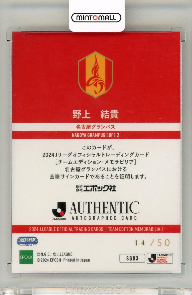 2024 EPOCH 名古屋グランパス 野上 結貴 直筆サインカード【14/50】 名古屋グランパス
