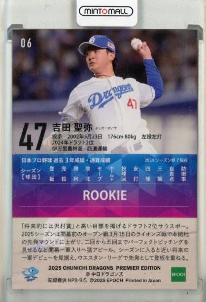 2025 EPOCH PREMIER 吉田 聖弥 シルバー 箔サイン ルーキー #06【37/99】 中日ドラゴンズ