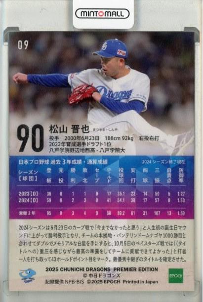 2025 EPOCH 中日ドラゴンズ PREMIER EDITION 松山晋也 REGULAR FOIL SIGNATURE シルバー版【015/150】