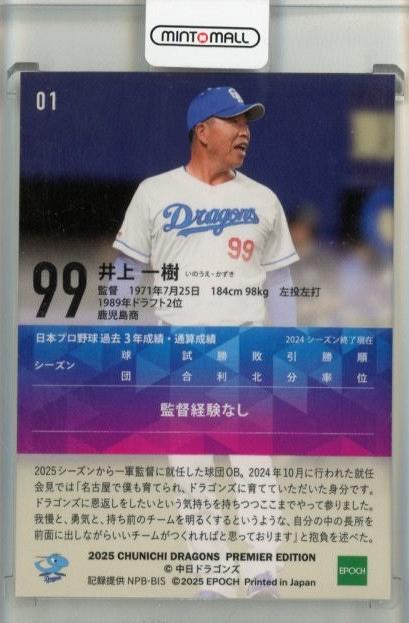 2025 EPOCH 中日ドラゴンズ PREMIER EDITION 井上一樹 REGULAR FOIL SIGNATURE ゴールド版【014/125】