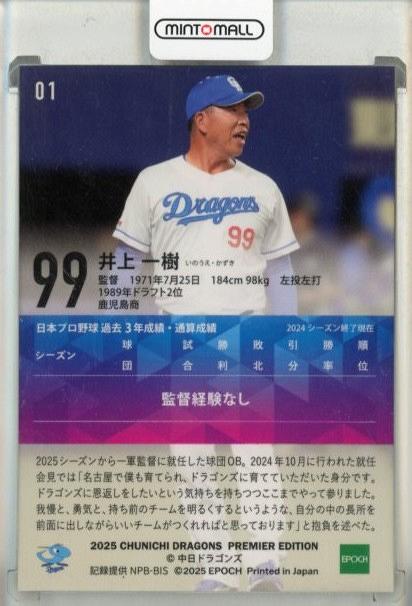 2025 EPOCH 中日ドラゴンズ PREMIER EDITION 井上一樹 REGULAR FOIL SIGNATURE ゴールド版【099/125 Jersey Number!!】