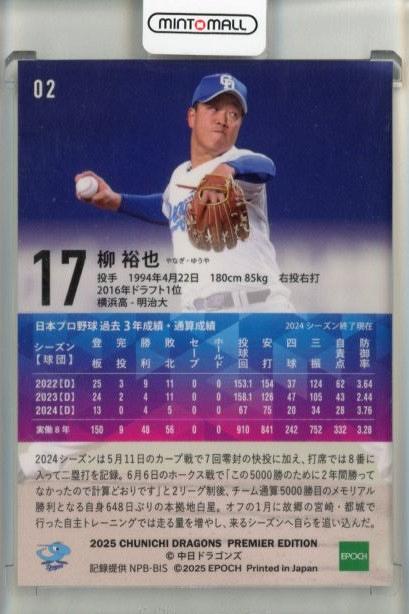 2025 EPOCH 中日ドラゴンズ PREMIER EDITION 柳裕也 TIME TO SHINE ホログラムD【03/50】