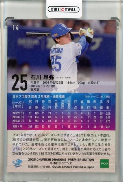 2025 EPOCH 中日ドラゴンズ PREMIER EDITION 石川昂弥 REGULAR DECOMORI SIGNATURE ホログラム版【12/75】