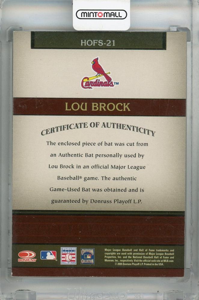 2005 Donruss Greats Lou Brock Hall of Fame Souvenirs Signature Material Bat #21 ※白かけあり St. Louis Cardinals