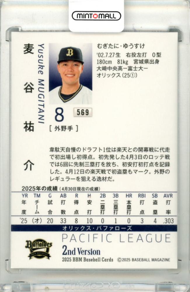 2025 BBM ベースボールカード 2NDバージョン 麦谷祐介 #569 レギュラーカード シークレット版 オリックス