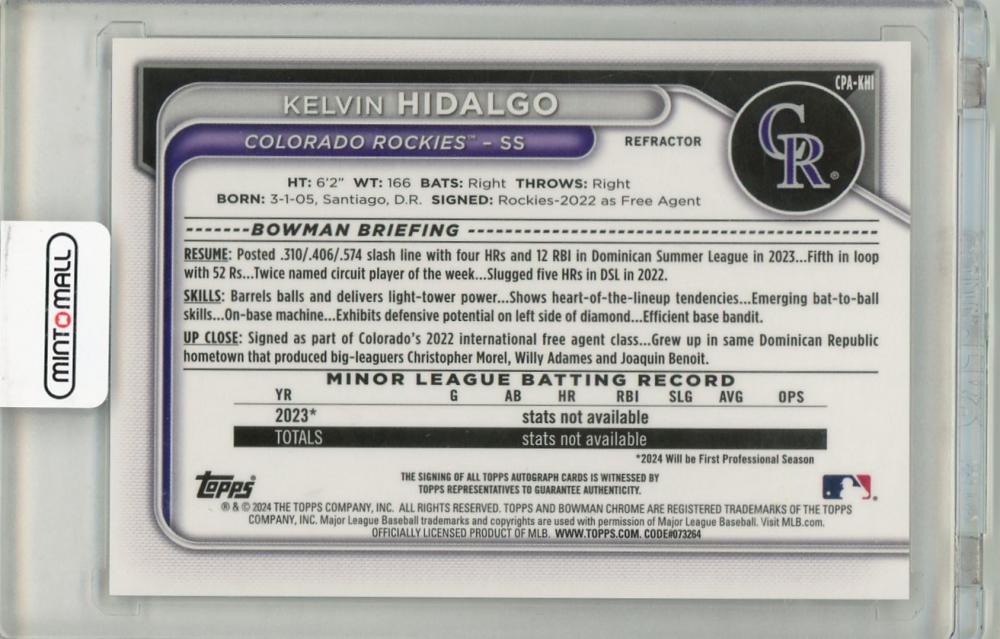 2024 TOPPS BOWMAN Chrome Kelvin Hidalgo #CPA-KHI Auto【040/499】 Colorado Rockies