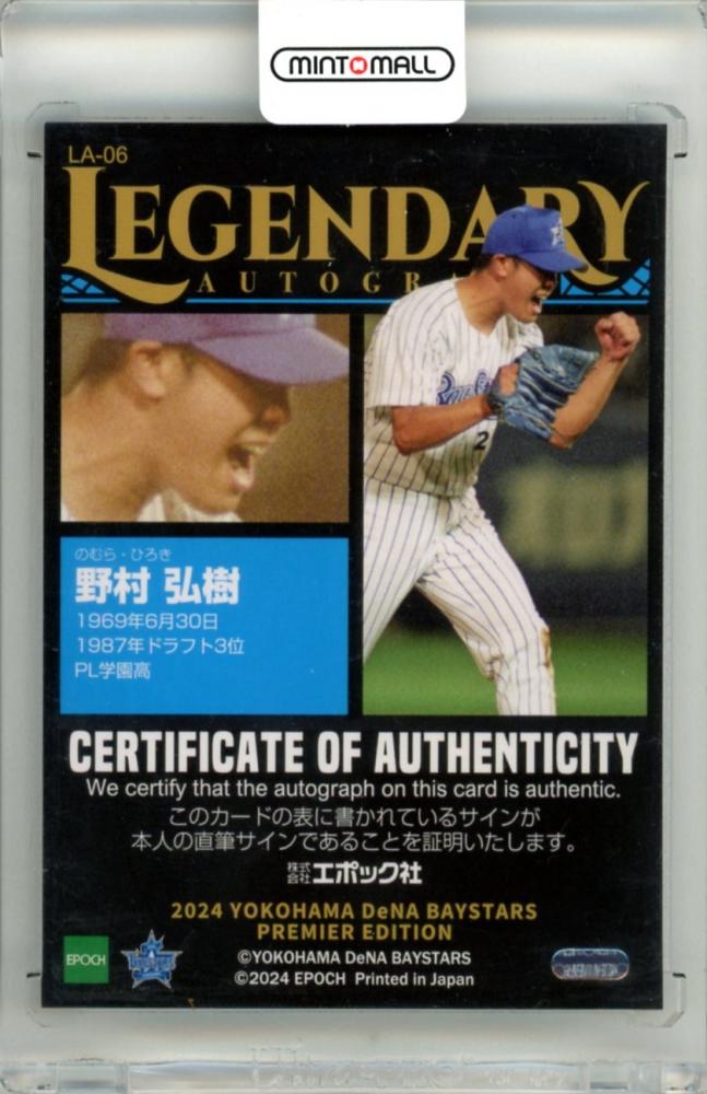 2024 EPOCH 横浜DeNAベイスターズ PREMIER EDITION 野村弘樹 #LA-06 LEGENDARY AUTOGRAPH 直筆サインカード【62/85】