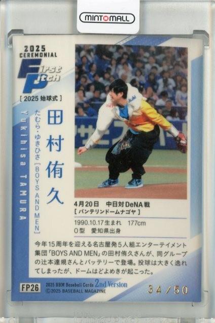 2025 BBM ベースボールカード 2NDバージョン 田村侑久 #FP26 始球式カード 直筆サイン版【09/50】 BOYS AND MEN