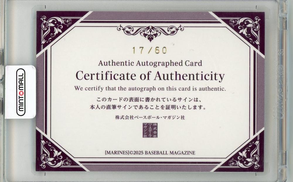 2025 BBM 千葉ロッテマリーンズ 二木康太 直筆サイン【17/60】 千葉ロッテマリーンズ