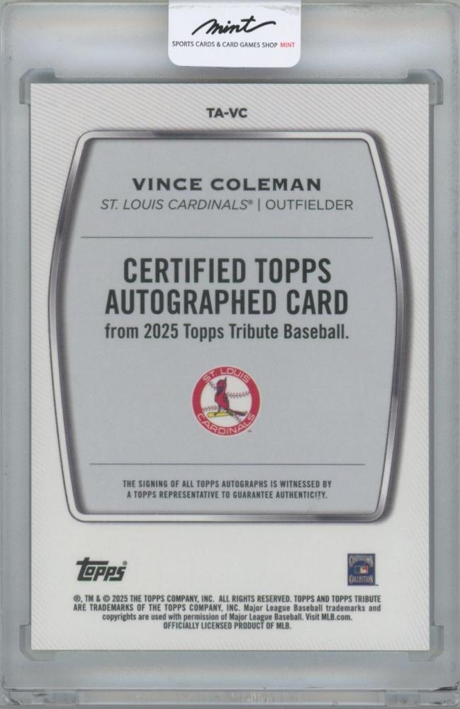 2025 TOPPS Tribute Autographs Blue / VINCE COLEMAN(St. Louis Cardinals) 【085/150】
