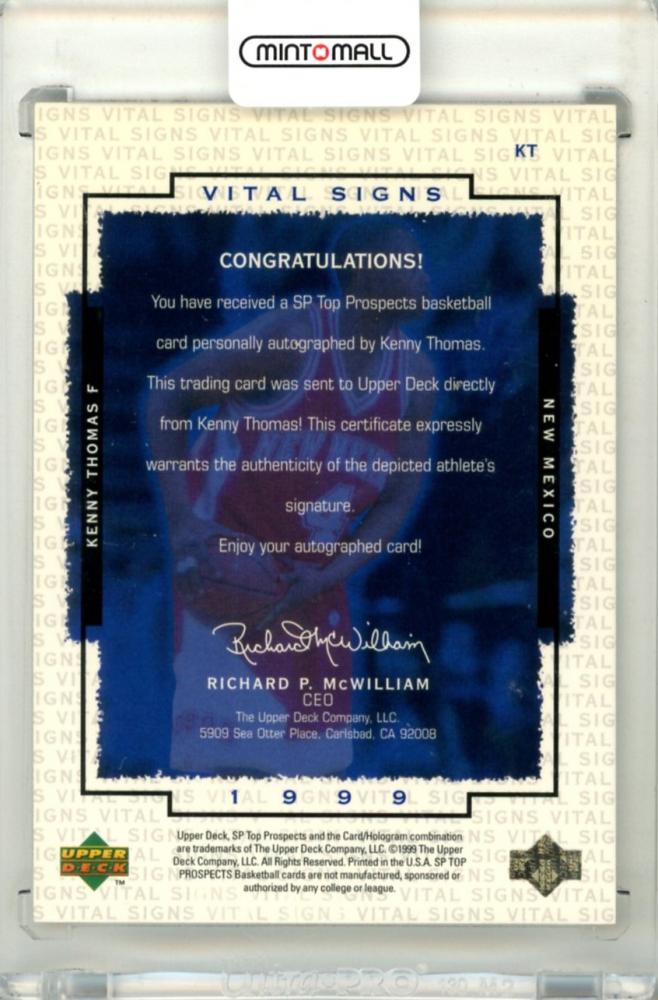 1999 Upper Deck SP Top Prospects Kenny Thomas #KT Vital Sigs Autographs