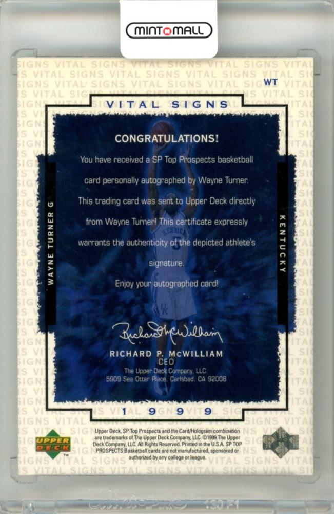 1999 Upper Deck SP Top Prospects Wayne Turner #WT Vital Sigs Autographs