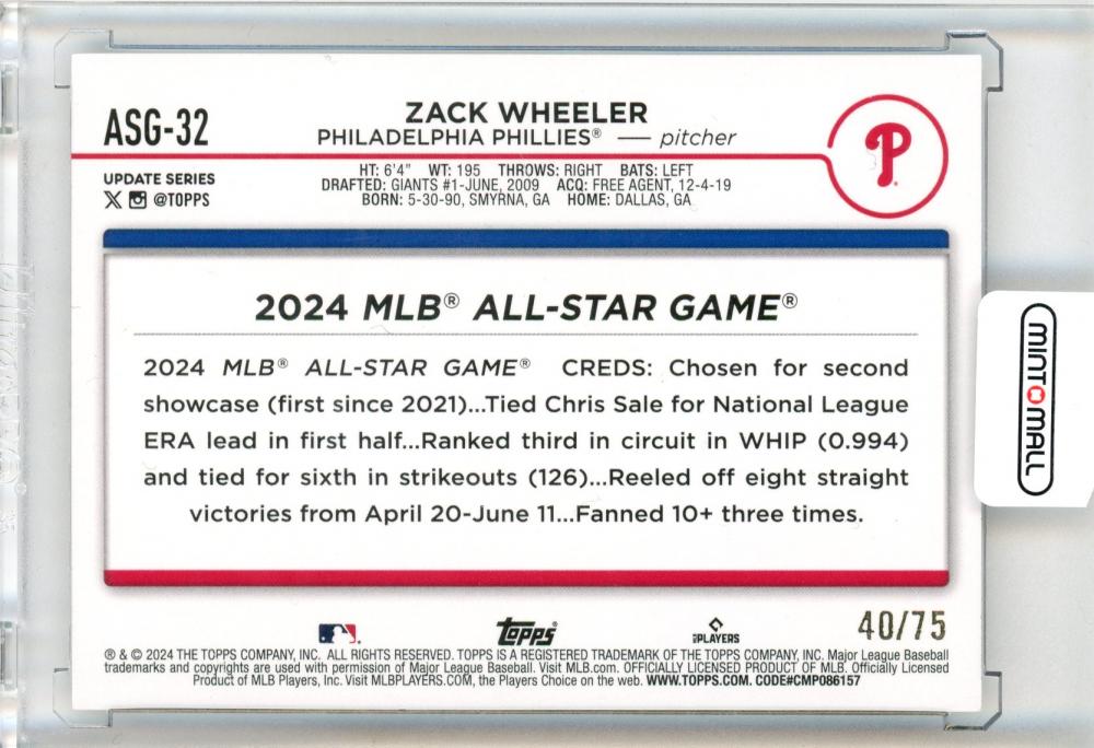 2024 Topps Update Series Zack Wheeler 40/75