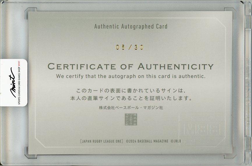 BBM ジャパンラグビー リーグワン 2024/D1ver. 松永貫汰 直筆サインカード【 05/30】