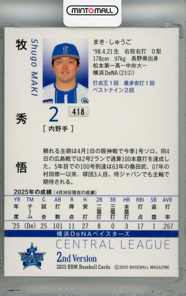 2025 BBM 2ndバージョン 牧秀悟 スーパーウルトラシークレット版 横浜DeNAベイスターズ