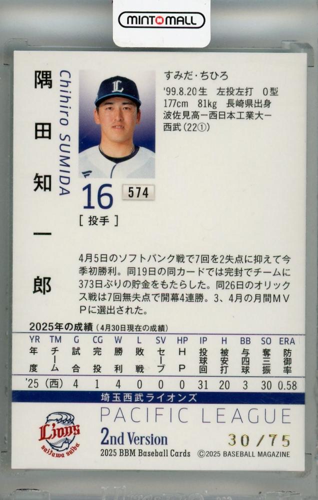 2025 BBM 2ndバージョン 隅田知一郎 ブルー箔サイン版【30/75】 埼玉西武ライオンズ