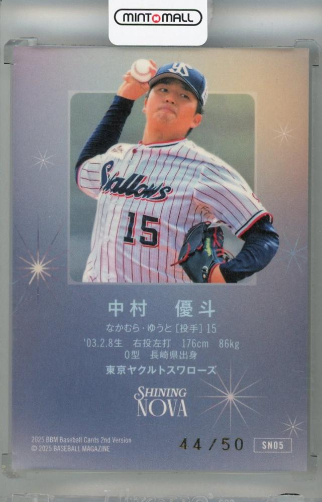 2025 BBM 2ndバージョン 中村優斗 SHINING NOVA オレンジ箔サイン版(RC)【44/50】 東京ヤクルトスワローズ