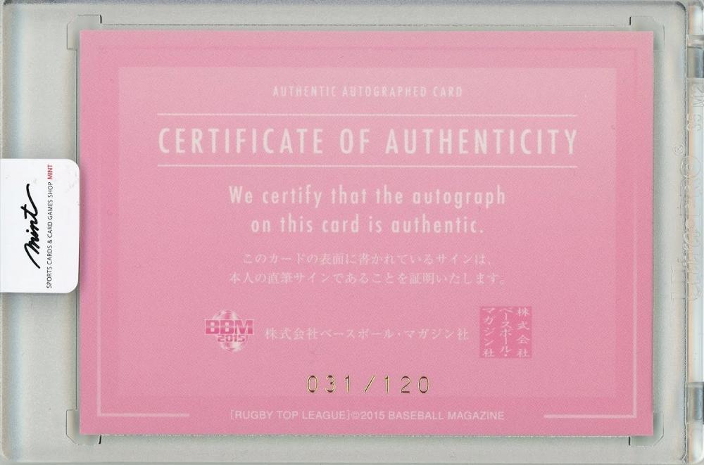 2015-16 BBM ラグビートップリーグ 三村勇飛丸 直筆サインカード 120枚限定【031/120】ヤマハ発動機ジュビロ