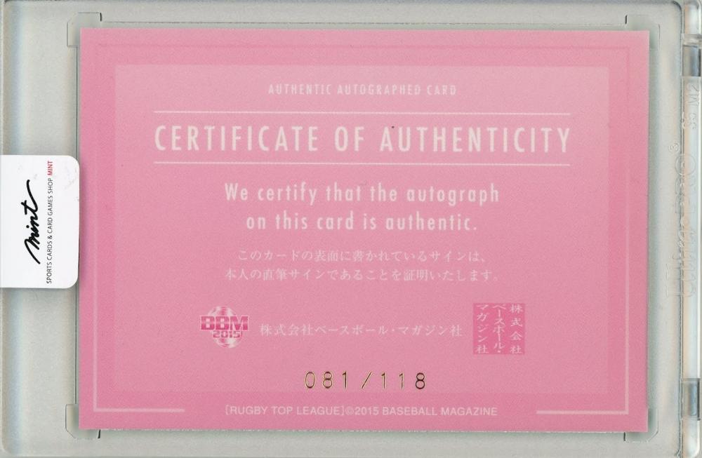 2015-16 BBM ラグビートップリーグ 森田佳寿 直筆サインカード 118枚限定【081/118】東芝ブレイブルーパス