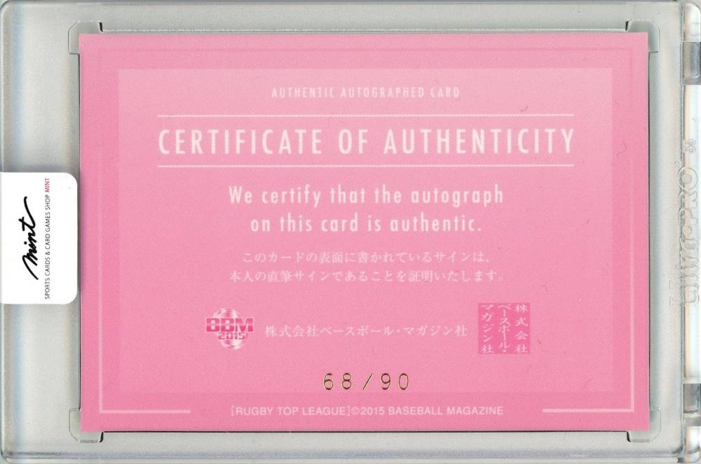 2015-16 BBM ラグビートップリーグ 文字隆也 直筆サインカード 90枚限定【68/90】トヨタヴェルブリッツ
