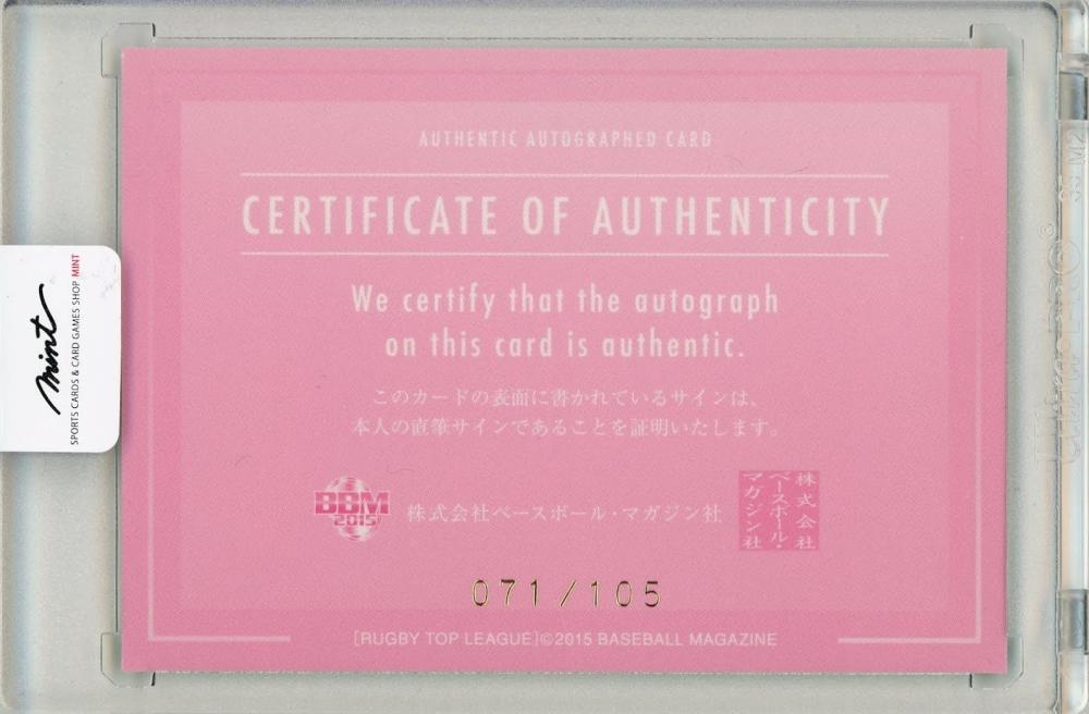 2015-16 BBM ラグビートップリーグ 吉田光治郎 直筆サインカード 105枚限定【071/105】トヨタヴェルブリッツ