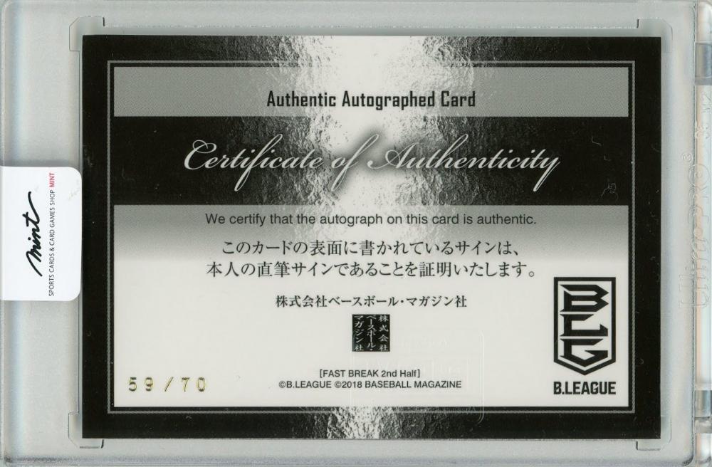 2017-18 BBM FAST BREAK 2nd Half 白濱僚祐 直筆サインカード 横版 70枚限定【59/70】秋田ノーザンハピネッツ