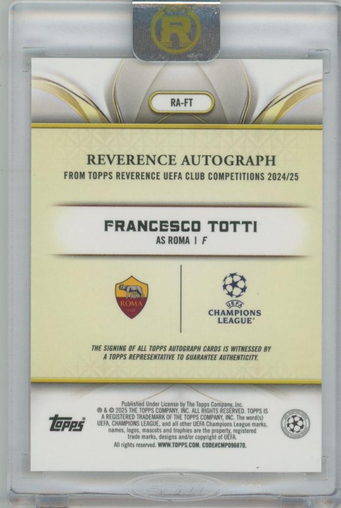 2024-25 TOPPS Reverence UEFA Club Competitions Reverence Autographs Purple / FRANCESCO TOTTI(AS Roma) 【02/50】