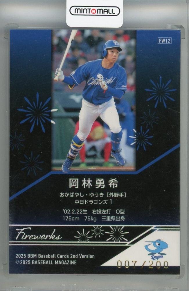 2025 BBM 2ndバージョン 岡林勇希 FIREWORKS グリーン箔版【007/200】 中日ドラゴンズ