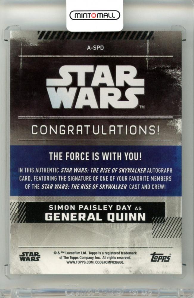 2019 Topps Star Wars: Rise Of Skywalker Simon Paisley Day As General Quinn A-SPD Autograph Card