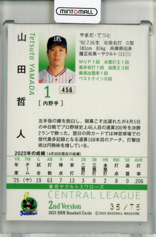 2025 BBM 2ndバージョン 山田哲人 青箔サインカード【35/75】 東京ヤクルトスワローズ
