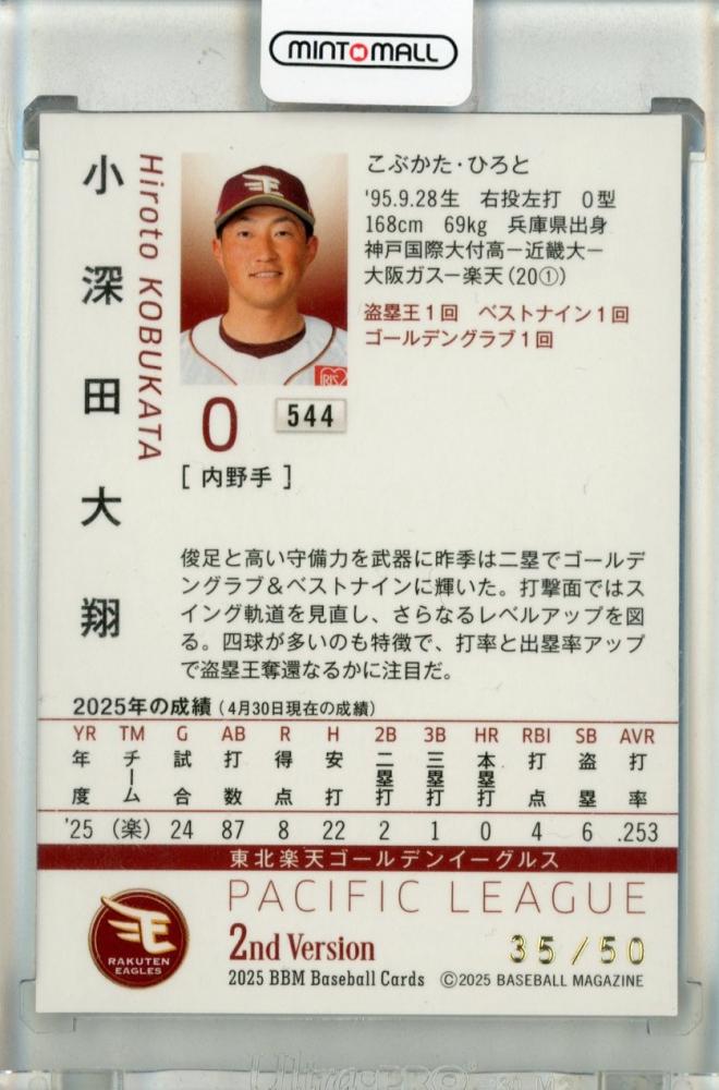 2025 BBM 2ndバージョン 小深田大翔 ホロ箔サインカード【35/50】 楽天ゴールデンイーグルス