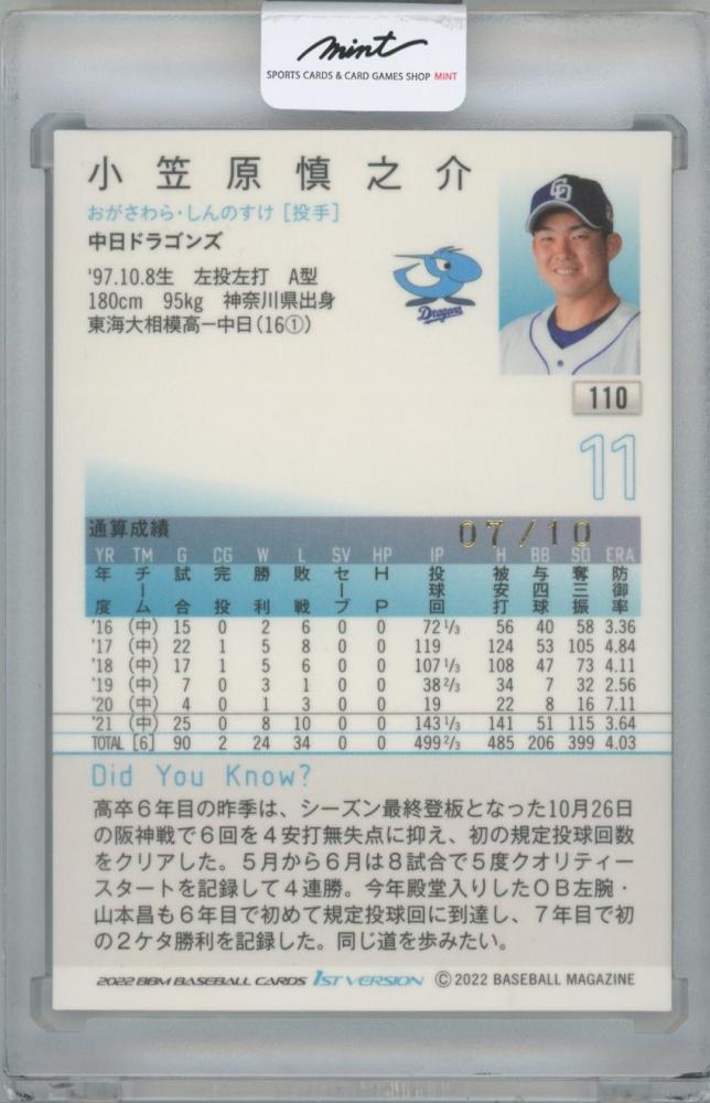 2022 BBM 1st Version / 小笠原慎之介(中日ドラゴンズ) パープル箔サイン入りパラレルカード 【07/10】