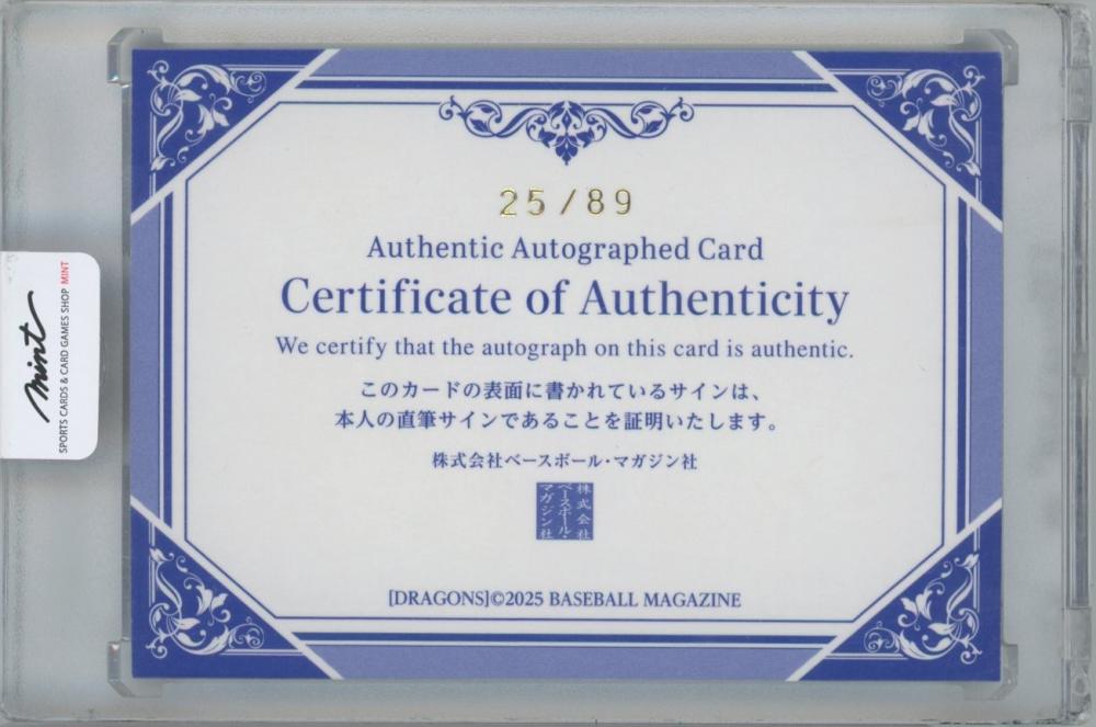 2025 BBM 中日ドラゴンズ / オルランド・カリステ 直筆サインカード 【25/89】