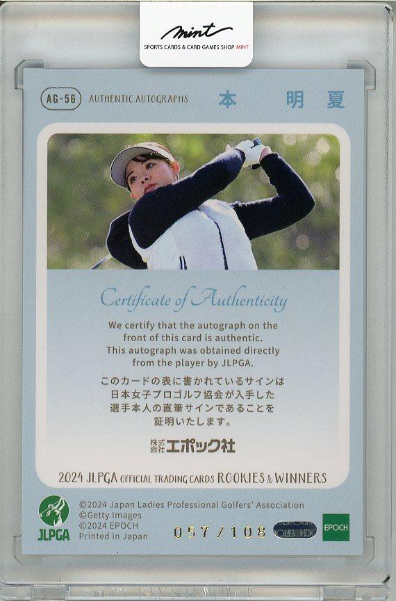 2024 EPOCH JLPGA ROOKIES&WINNERS 本明夏 #AG-56 直筆サインカード 通常版【098/108】