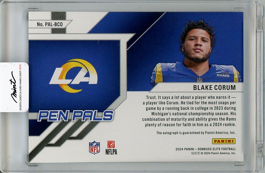 2024 Panini Donruss Elite Football Blake Corum Pen Pals Signatures/RC Los Angeles Rams