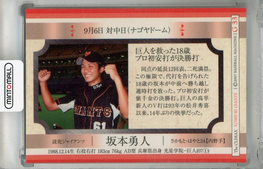 2007 BBM 読売ジャイアンツ THE CLIMAX 坂本勇人 レギュラーカード