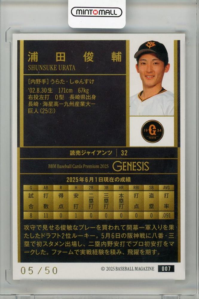 2025 BBM GENESIS 浦田 俊輔 オレンジ箔【05/50】 読売ジャイアンツ