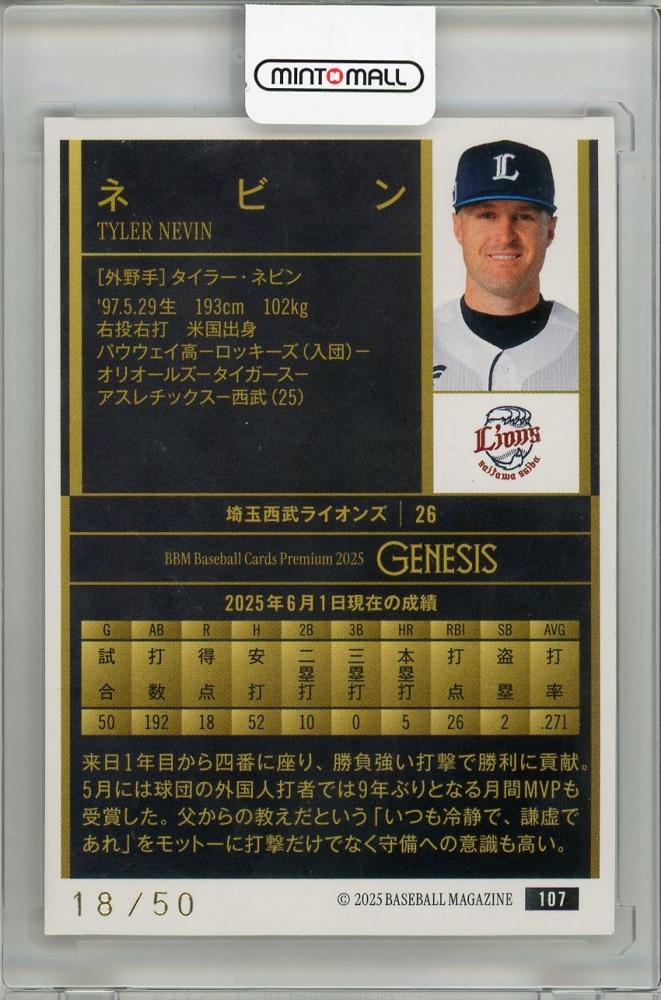 2025 BBM GENESIS タイラー・ネビン オレンジ箔版【20/50】 埼玉西武ライオンズ